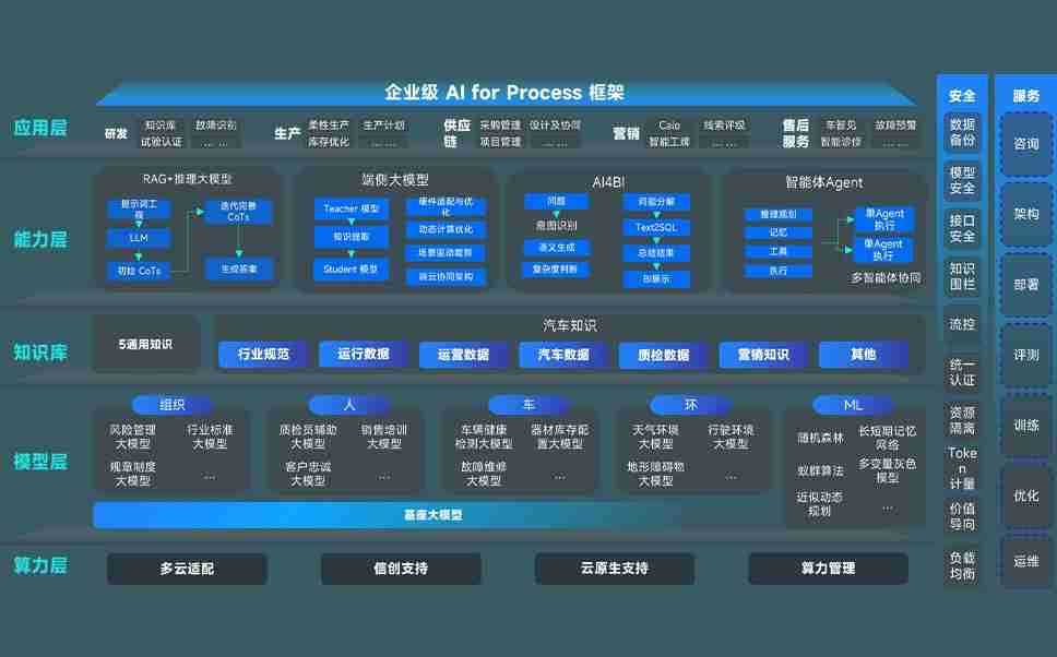 端到端的一站式AI工作空间深度融合了从企业战略规划到日常经营的全流程业务板块,,定向解决车企内部领域多、、部门多、、、链条长、、、场景碎片化等难题,,,支持车企快速构建以AI为核心的生产力写作体系,,,实现任务执行与AI能力的无缝集成与交互
