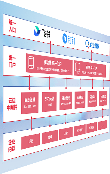 对协作平台提供支持服务,,,支持企业应用与协作平台对接,,,,包含组织同步、、、、消息集成、、、待办集成等。。。支持目前主流的协作平台:钉钉、、、企微和飞书。。。